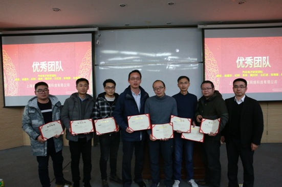 優秀團隊汽車(chē)電(diàn)子(zǐ)研發團隊(從(cóng)左到(dào¶™↑♦)右王紅(hóng)波、黃(huáng)亮(liàngβ∞)、魏慶祥、曾佳、俞鑫東(dōng)、張海(hǎi)雄、紀柯、周總(頒獎人(rén)員(<±←₽yuán)))