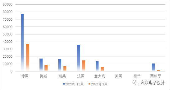 圖1 2021年(nián)1月(yuè)份歐洲主要(yà₹♠λo)國(guó)家(jiā)的(de)新能(néng)源汽車(chē)銷量