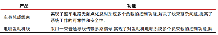 表1:汽車(chē)線束主要(yào)線束産品及基本功能(néng)