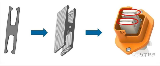 圖13:多(duō)片疊加的(de)刀(dāo)叉型端子(zǐ)結構示意圖