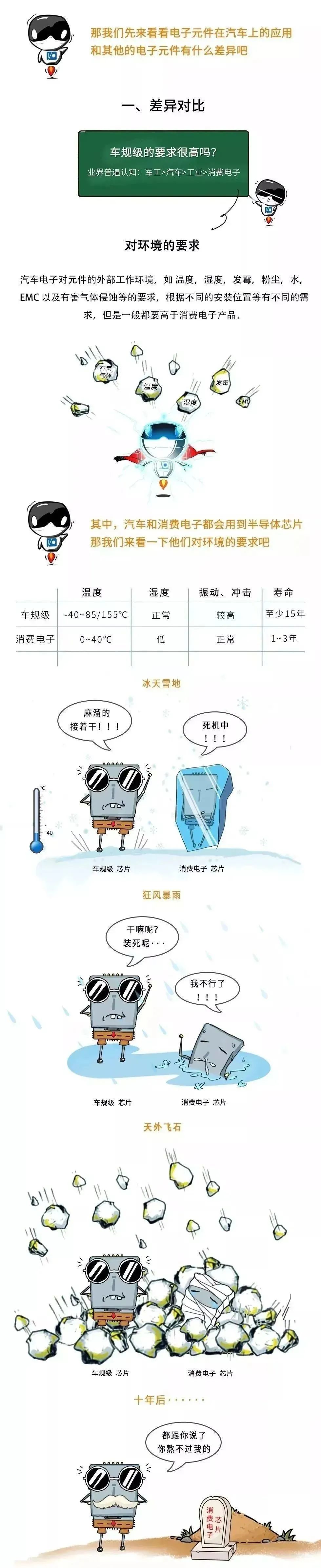 IATF16949、AEC-Q及ISO16750中的(de)很(h ěn)多(duō)測試标準及流程體(tǐ)系都(dōu)是(shì)汽車(chē)行( ♣xíng)業(yè)所獨有(yǒu)的(de),包括我們之前提到(dào)₩γ♣λ的(de)更改過程和(hé)重新認證過程。下(©$xià)面我們就(jiù)從(cóng)另外(wài)幾個(gè)維度'比較汽車(chē)電(diàn)器(qì)産品與消費(fèi)類産品✘γ之間(jiān)的(de)區(qū)别。MPS總結出來(lái)的(de)一(yī)個(±σ♣gè)圖更直觀。MPS從(cóng)環境溫度、使用(yòng)壽♠™♣命、失效率、産品生(shēng)命周期等四個(gè)維度對(duì↔$₽λ)消費(fèi)電(diàn)子(zǐ)和(hé)汽車(chē)電(diàn)子(z¥<₹ǐ)進行(xíng)了(le)對(duì)比,其實核心還(hái)是(shì)那(nà)兩點:可(≈✔¶αkě)靠性和(hé)長(cháng)壽命。