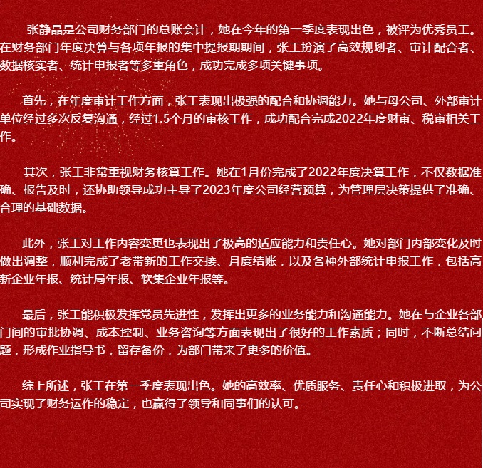 創程優秀匠(jiàng)人(rén) —— 張靜(jìng)晶