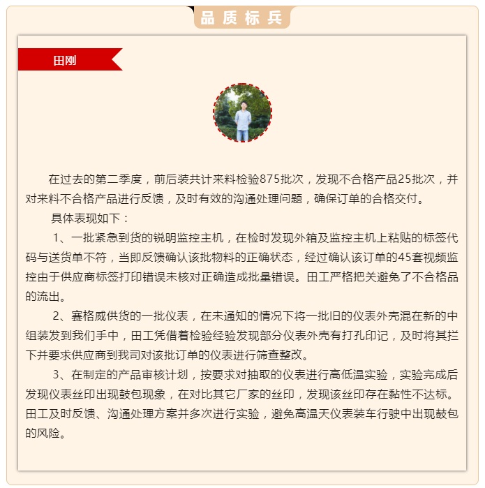 2023年(nián)第二季度評優 —— 品質标兵(bīng)