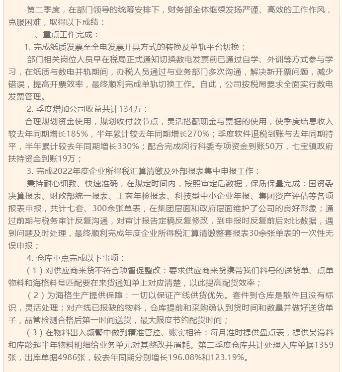 2023年(nián)第二季度評優 —— 優秀團隊【财務部】