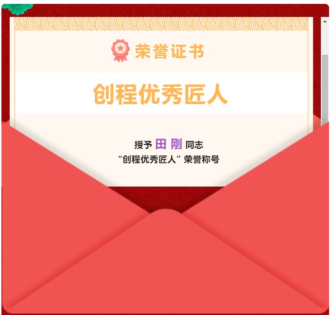 2023年(nián)第二季度評優 —— 創♣∏λ程優秀匠(jiàng)人(rén)【田剛】