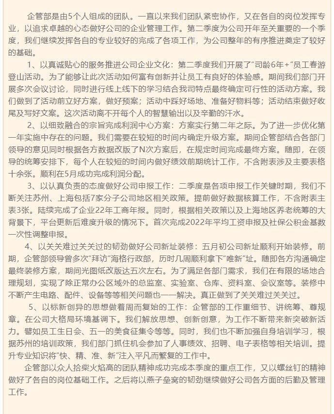 2023年(nián)第二季度評優 —— 優秀團隊【企管部】