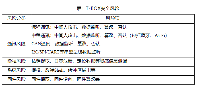 T-BOX作(zuò)為(wèi)車(chē)輛(liàng)中的(de)接入點,☆∏是(shì)車(chē)內(nèi)最核心的(de)模塊。T-BOX常見(jiàn)功能(néng)包括遠(yuǎn)程控制(zhì)、遠(yuǎn)程診斷、OTA、高(gāo)精定位、近(jìn)場(c♦™hǎng)控制(zhì)、V2X等,T-BOX系統一(yī)般采用(yòng)Linux系統,因此Linux系統的(de)安全風(fēng)險,T-BOX都(dōu)具備,以下(xià)是(shì)T-BOX主要(yào)攻擊面(非詳盡)。