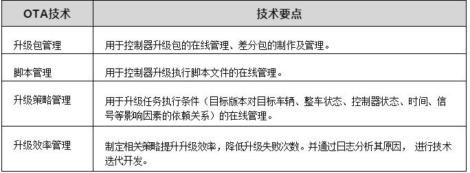 OTA 系統常用(yòng)升級技(jì)術(shù)如(rú)表 2- →6 所示。