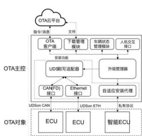 ② 私有(yǒu)協議(yì):除了(le)升級遵從(cóng)标準協議(yì)的(de)傳統控制(zhì)器(qì),₹βOTA 還(hái)需要(yào)支持智γ'®能(néng) ECU 的(de)升級。智能(néng) ECU 通(tōng)常帶有(yǒu ₽)操作(zuò)系統并且自(zì)身(shēn)具有(yǒu)升級能(néng)力,作(zu₩☆ò)為(wèi)升級對(duì)象,需要(y★£★ào)從(cóng) OTA 主控模塊或者雲端獲取升級包,并與 OTA 主控進行(xíng)>ε<信息交互,實現(xiàn)升級的(de)觸發和(hé)升級信息的'β(de)反饋。對(duì)于這(zhè)部分(fēn)升級所涉及到(dào)的(de)升級包'©♥♦分(fēn)發和(hé)升級控制(zhì),現(xiàn)在并沒有(yǒu)統一(yī)的(de)定義和(hé)标準,∏÷各家(jiā)車(chē)企和(hé)供應商的(de)實現(xiàn)方案也(yě)各異。