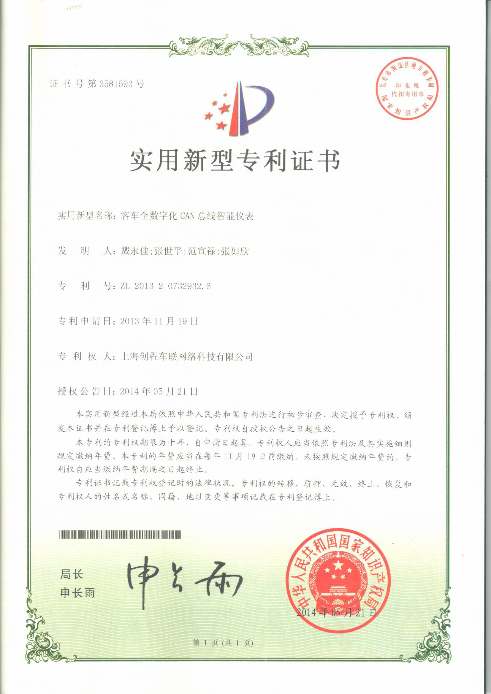 創程基于CAN總線的(de)新能(néng)源客車(chē)智能(néng)儀表軟件(jià♠β✔n)V1.0